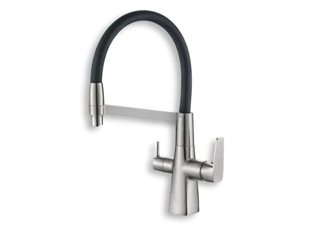 Vodovodní baterie dřezová stojánková s otočným ústím - pro dvě vody - pitnou a užitkovou - černá matná