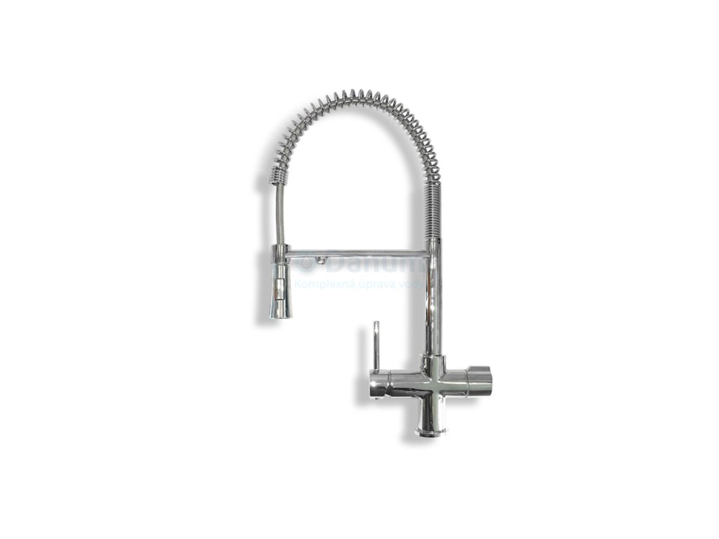 Trojcestná kuchyňská baterie se sprchovou hlavou umožní mít vodu z vodovodu a filtrovanou vodu v jedné kuchyňské baterii, díky skrytým vodním kanálům. Trojúčelová kuchyňská baterie musí být připojena za systémem vodního filtru.